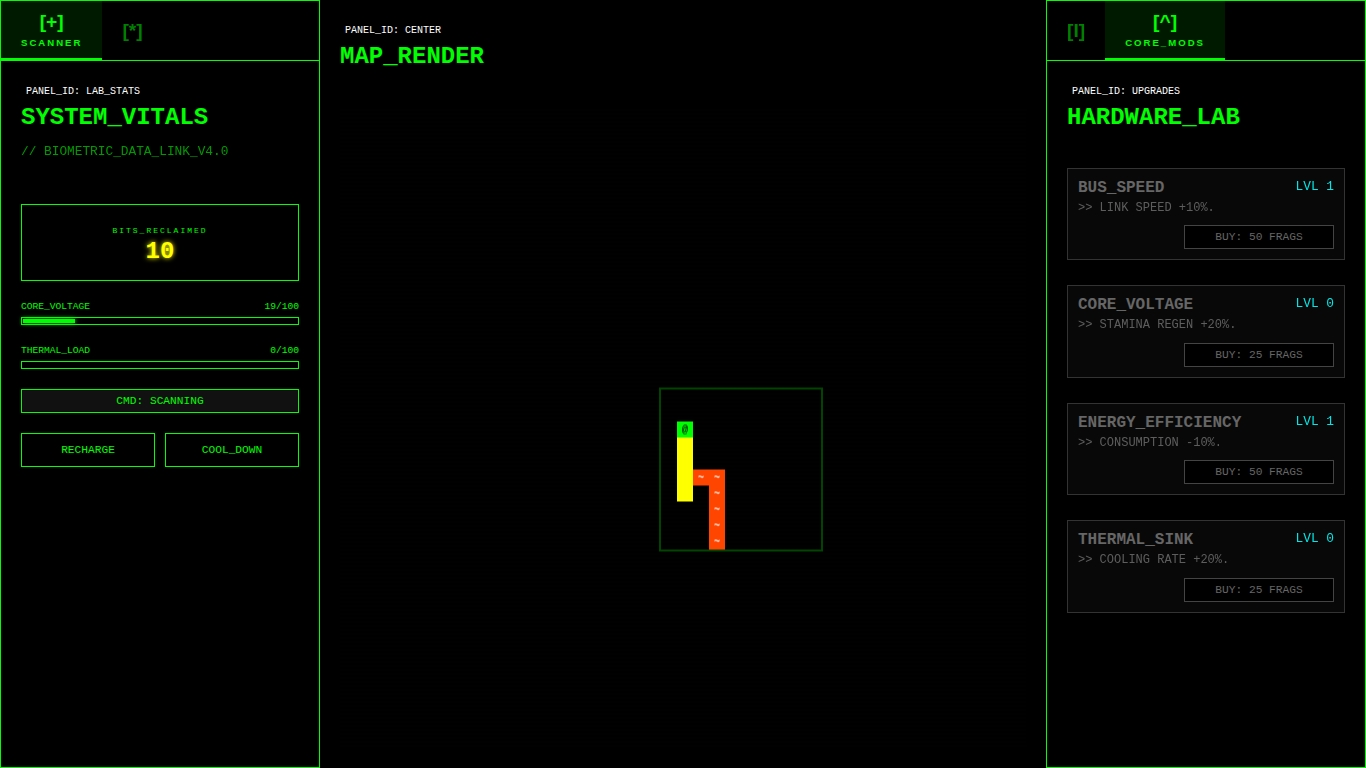 thank you... the auto cooling and recharging is meant to help... with too much heat the bit get confuse, and with too low stamina/energy he cannot walk... :B