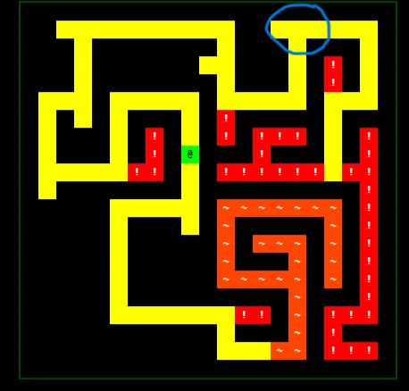 See the marked intersection. Now, despite the right path being an obvious dead end, it will continue to go down that path until every square is marked red, and inevitably die to the lava, instead of just taking a different path altogether.